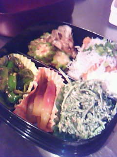 ・上面鋪有辣蘿蔔和小銀魚的豆腐(把東西放一起吃省時間,便當嘛)