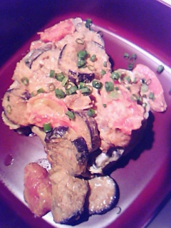 ・紅咖喱炒茄子五花肉(這種叫做Rosa Bianca的茄子相當美味)