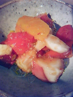 ・韓式醋漬番茄章魚(用洋蔥和蘋果磨碎而成的調味汁配合得正好)