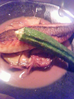 (雖然紅酒汁一般用於肉類菜式,但石鱸配上用小牛肉高湯煮過的賀茂茄子後變得相得益彰了。)