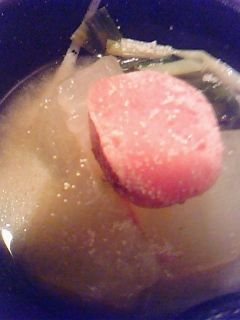 [3]原文為“出汁”,日本料理中用來充分牽引出原材料的原味的調味料,從鰹魚乾及曬乾的海帶中提取製作而成。